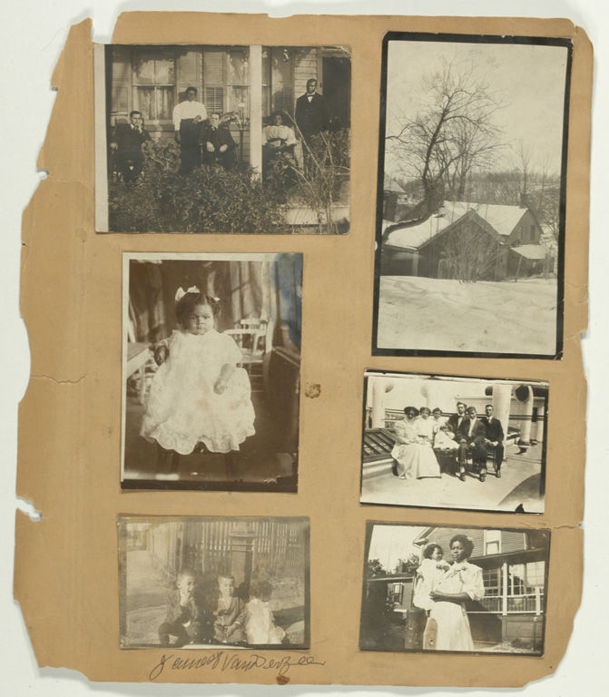 James Van Der Zee b. 1886 - d. 1983, Album page from the artist's personal photo album, with six mounted photographs, 1910.