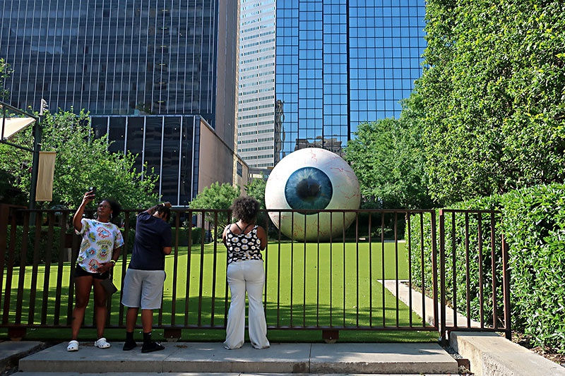 The Eye in Dallas is upon you. As you walk down Main Street through the concrete canyons of downtown, a 30-foot eye stares from a gated lawn.