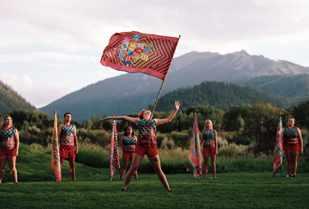 Jeffrey Gibson’s THE SPIRITS ARE LAUGHING, performed Aug. 3, 2022, at Anderson Park Meadow at the Aspen Institute. Credit: Adrianna Glaviano/Aspen Art Museum.