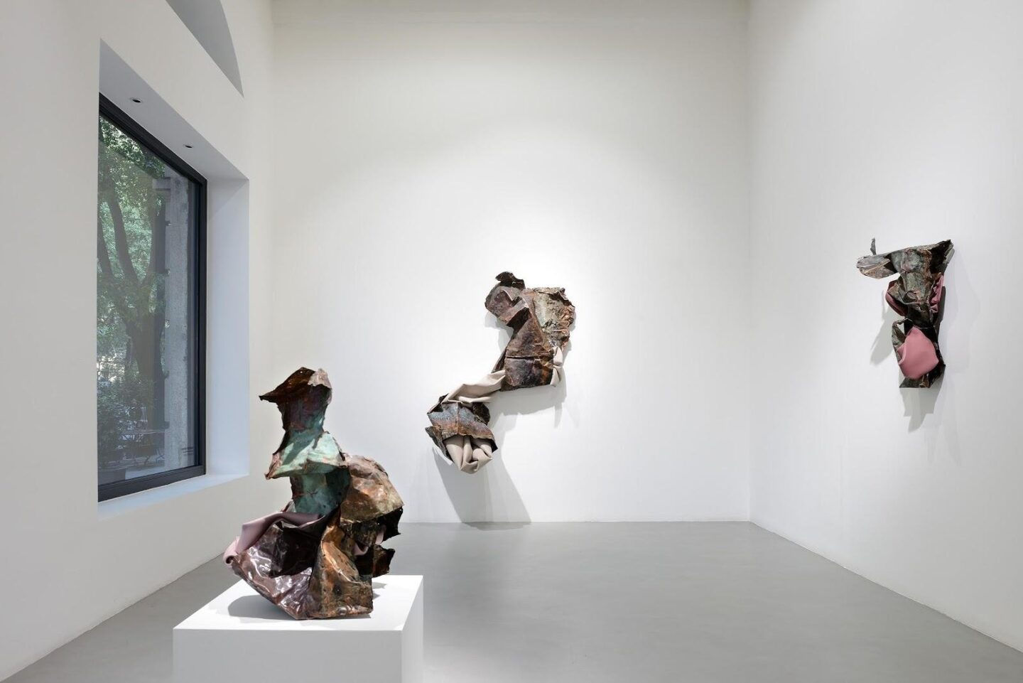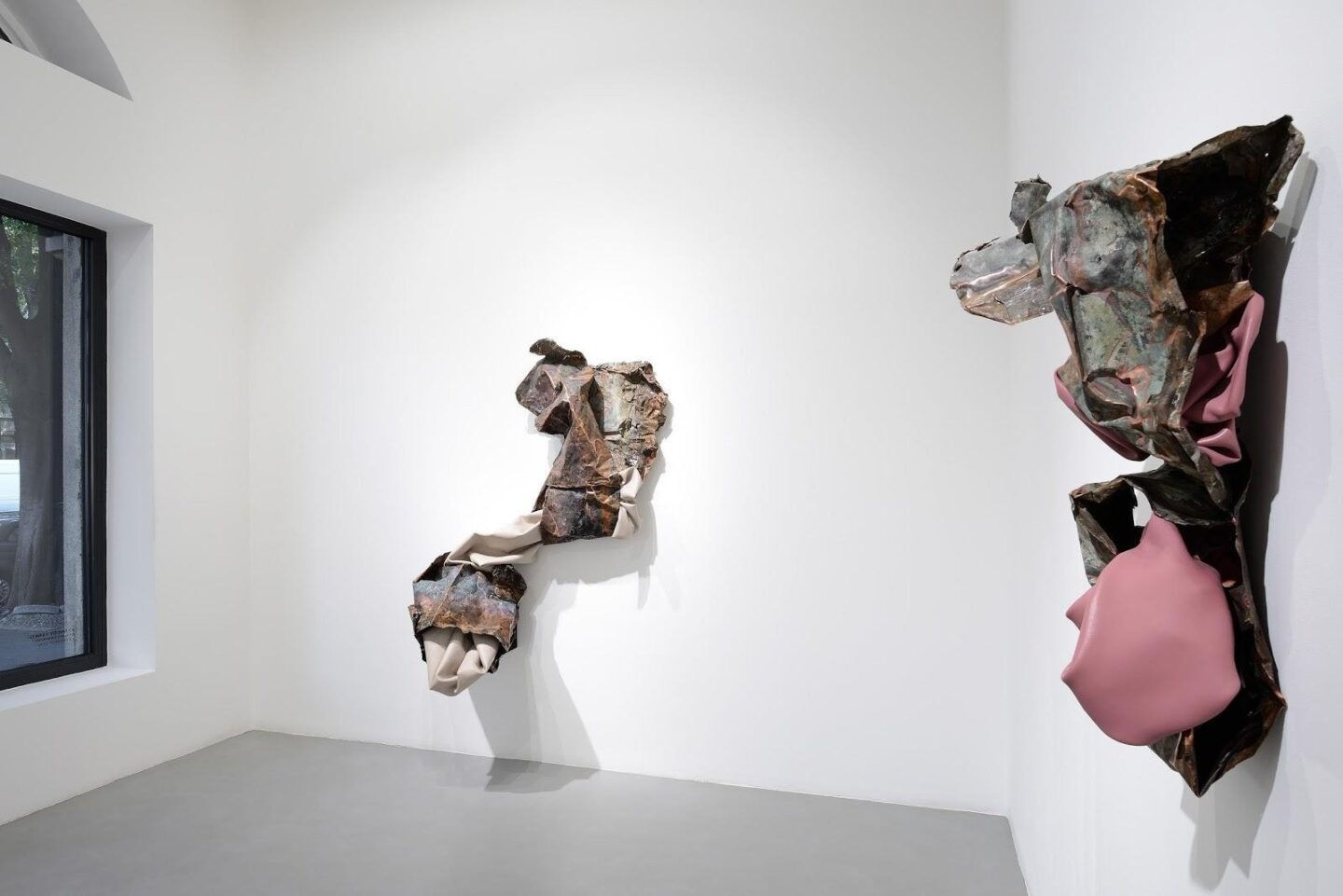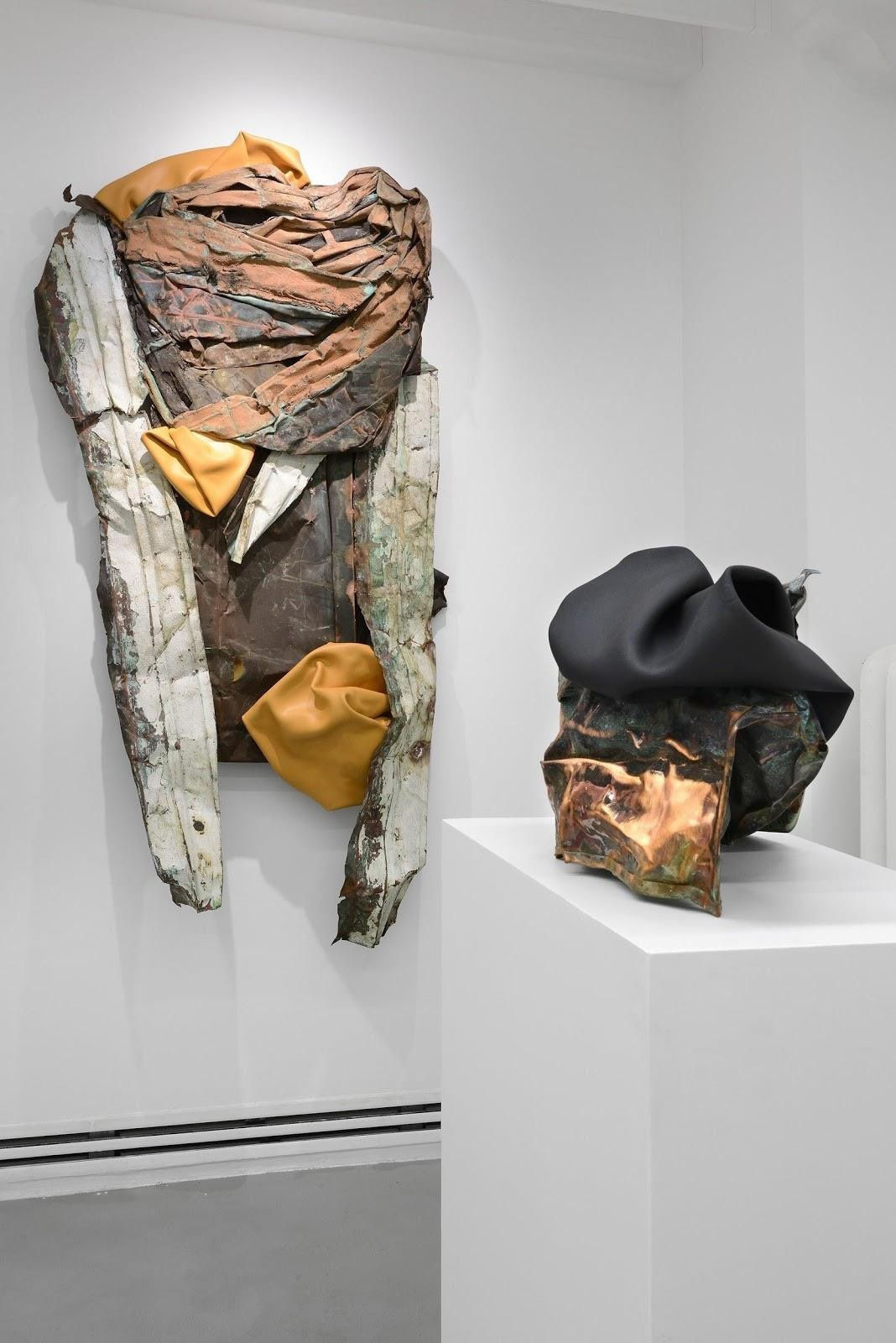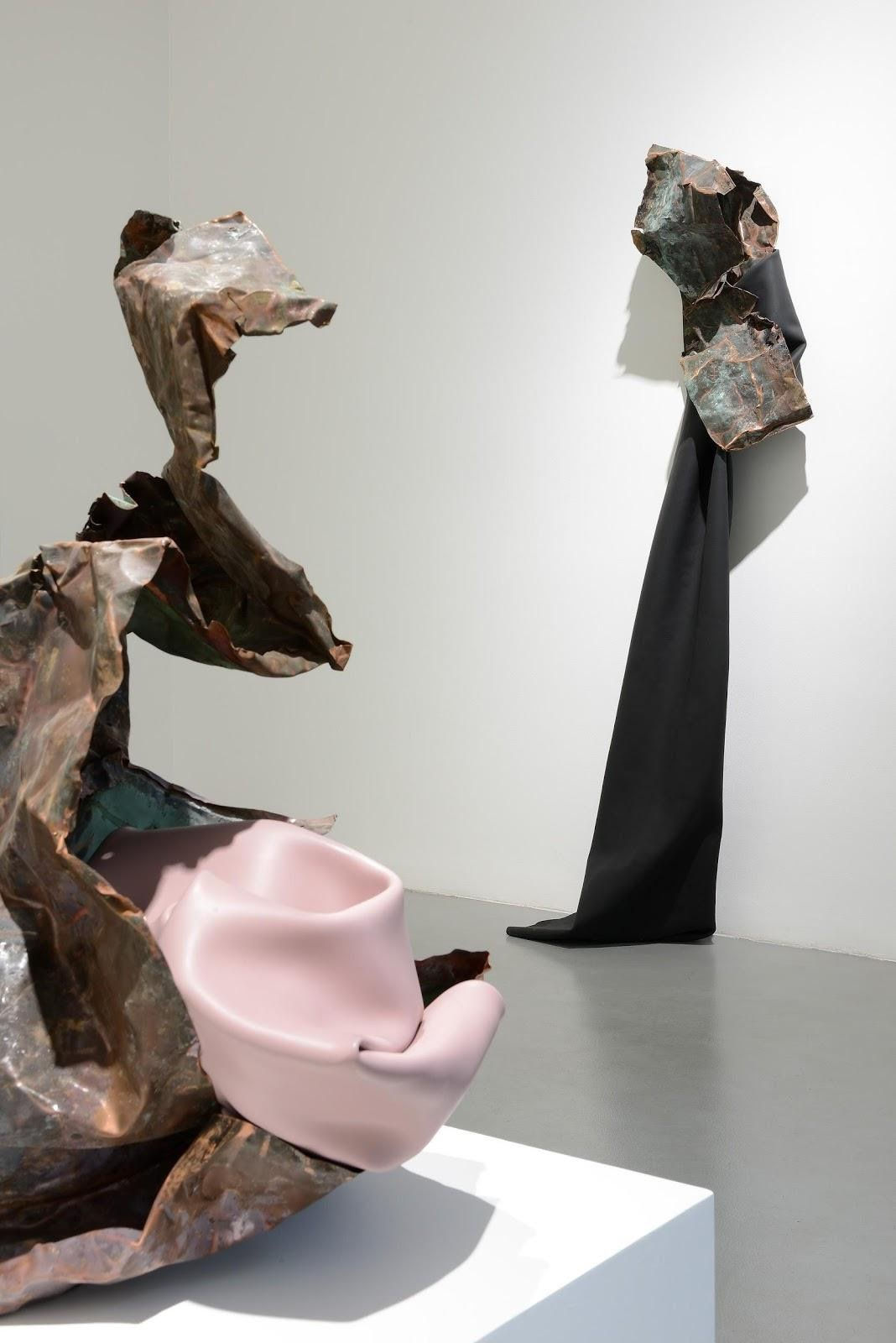 Compared to the more geometrically structured forms at Kavi, I think these sculptures are much more sensual, and feminine. Here this raw and pretty masculine muscled metal elegantly bends to your touch, but also embraces these paint skins. These creatures are flirting with the visitor, but they still have an air of resistance. Can you tell me a little bit about the nature of this work?