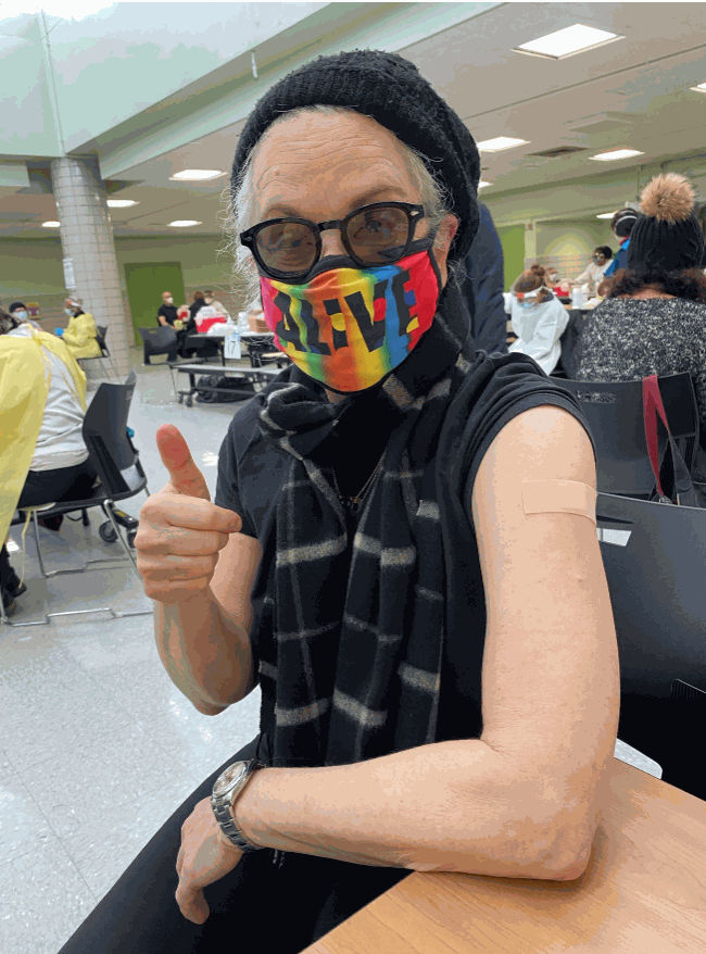 Up next: Deborah Kass, an artist who lives and works in Brooklyn. She is thrilled to have received her second COVID vaccination.