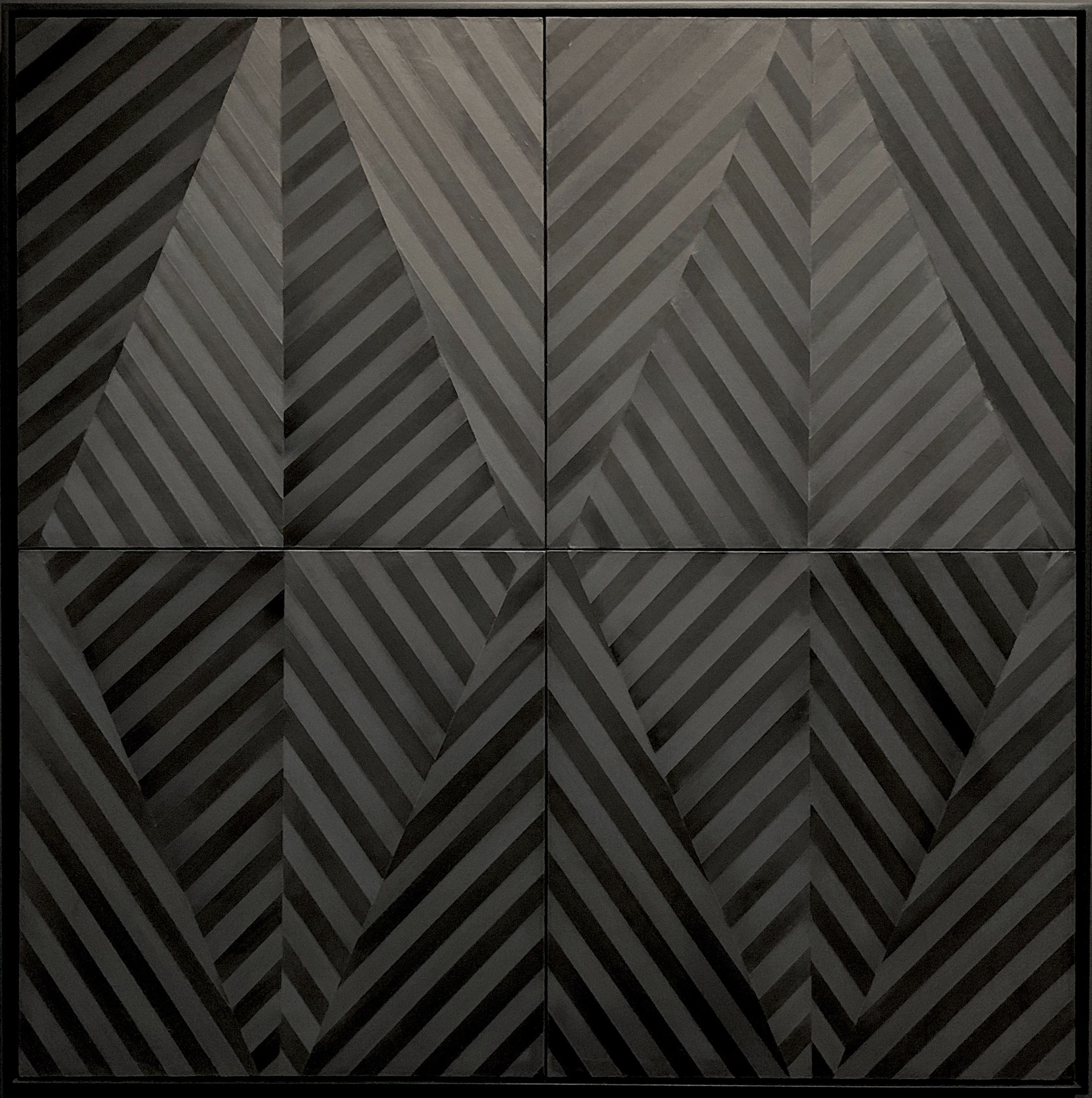 While Little has used both raw pigment on paper and conventional oils on canvas, the material he’s most frequently associated with is one that dates back millennia: encaustic. Believed to have been invented in Ancient Greece, encaustic—a mixture of varnish, pigment, and wax heated to a liquid state—is difficult to use. As he does with most everything else, Little formulates his own encaustic, then flattens them out in smooth layers arrayed in hard-edged patterns like chevrons, angled striations, and triangles. And though he acknowledges his appreciation for the medium’s “robust and central qualities,” Little says he also wants to “expand it beyond the conventional notion of encaustic, so when you look at my paintings, you don’t really know what medium they’re made with.”