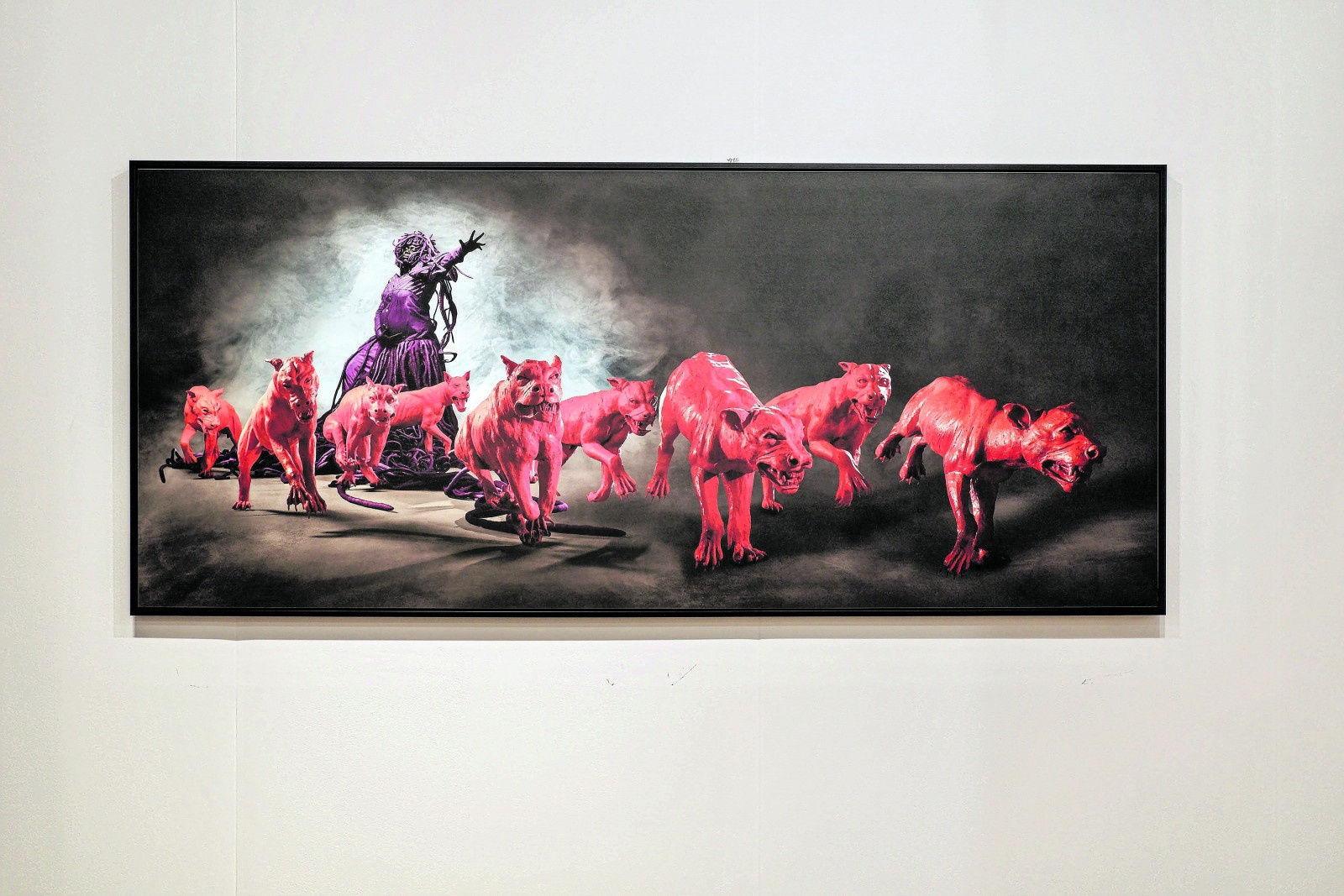 Mary Sibande had a large colour photograph titled Right Now! (2015) in the booth of Kavi Gupta. This powerhouse Chicago gallery, which has represented Sibande in the US since 2018, also staged a fine survey of works by the black artists’ collective Africobra (aka the African Commune of Bad Relevant Artists) in collaboration with the Peninsula Hotel.